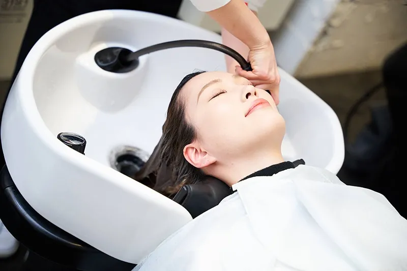 ヘッドスパの時間をより快適に過ごしていただくため、フルフラットタイプのシャンプー台を導入しています。首だけで支えるシャンプー台とは異なり、身体全体を預けて横になることができるため、長時間でも楽な姿勢を保つことが可能です。このシャンプー台で行うヘッドスパは、深いリラクゼーションへとお客様をいざないます。美容室にいることを忘れてしまうような、心地よい時間をご体験ください。名東区の心安らぐ環境において、上質な設備と手技による施術をお届けいたします。
